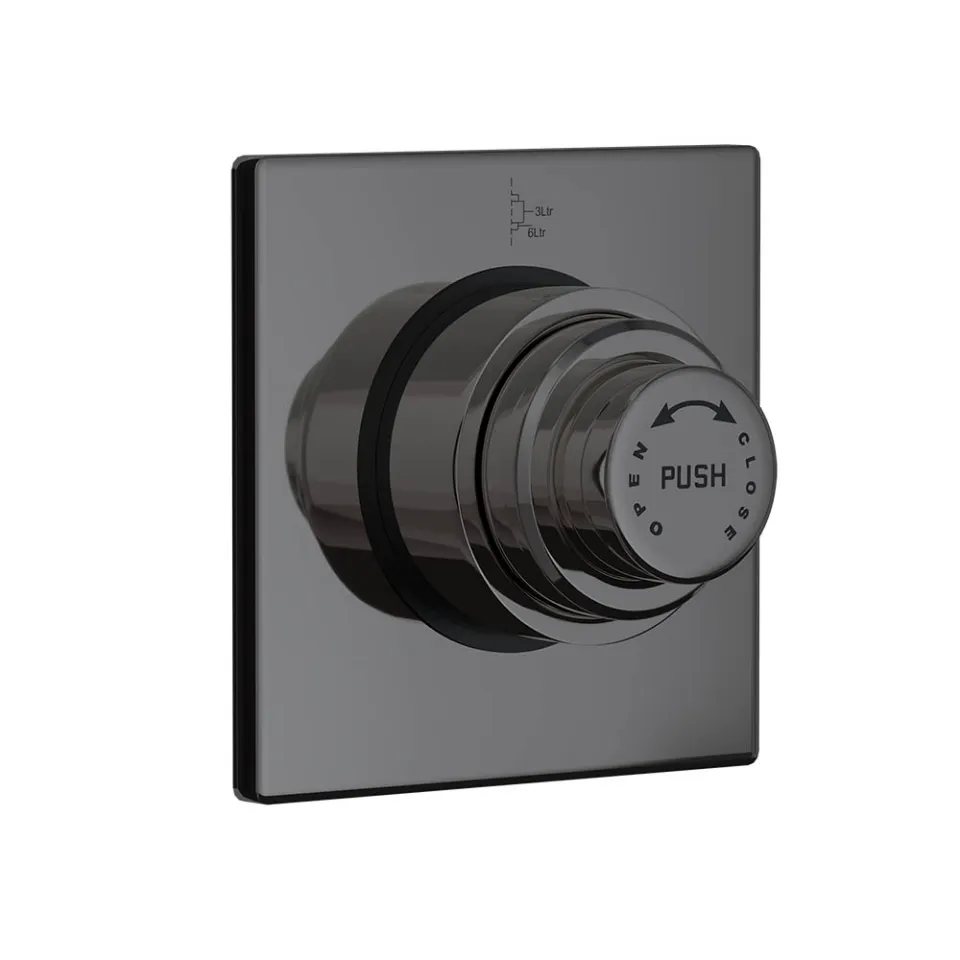Покрытие "чёрный хром" и квадратный фланец делают этот нажимной кран стильным элементом декора, который подчёркивает элегантность и современность интерьера ванной комнаты. Такой элемент добавит вашему пространству выразительности и изысканности.