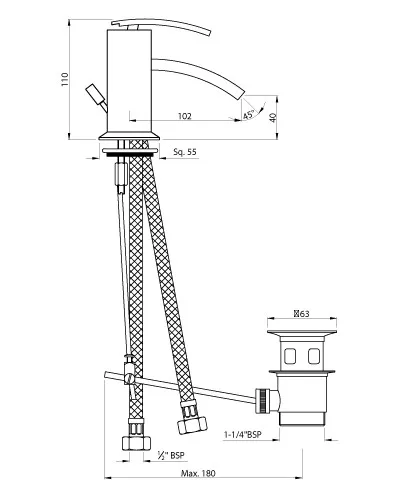 - Современный и элегантный дизайн: Смеситель выполнен в стиле минимализм, который идеально подойдёт для современных интерьеров ванной комнаты.