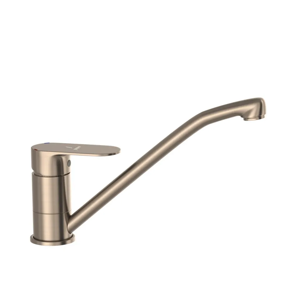 Однорычажное управление позволяет плавно и точно регулировать температуру и напор воды, что делает использование смесителя простым и удобным. Поворотный излив обеспечивает лёгкость в управлении потоком воды, что особенно удобно при работе с крупной посудой или наполнении больших ёмкостей. Смеситель комплектуется гибкими подводками длиной 375 мм, что делает его установку быстрой и простой.