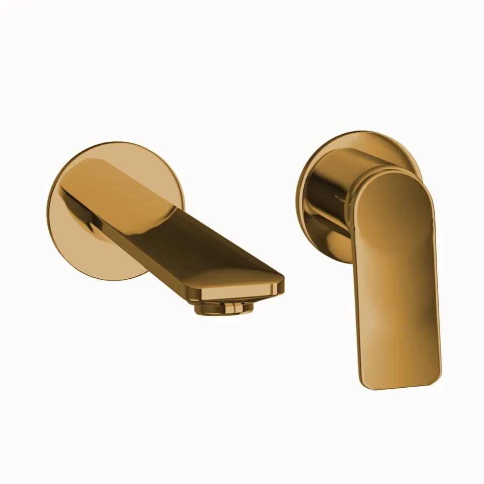 ИндияСмеситель для раковины Jaquar Laguna LAG-GBP-91231NK выполнен в глянцевом золотом покрытии (PVD), создавая роскошный и элегантный акцент в интерьере ванной комнаты. Это настенный комплект видимых частей для однорычажного смесителя, который включает рычаг управления, корпус картриджа, ниппель, излив и две настенные розетки, обеспечивая удобное управление потоком и температурой воды.