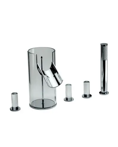 - 5-отверстийный смеситель для ванны: Оборудован контролем подачи горячей и холодной воды, спаутом, дивертором для переключения между различными источниками воды и встроенным ручным душем.