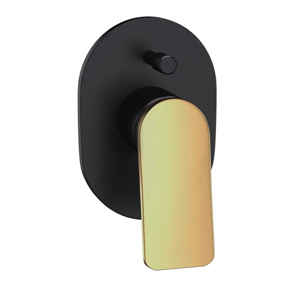 Смеситель для ванны Jaquar Laguna LAG-BGM-91079NK выполнен в изысканном сочетании матового золота (PVD) и черного матового покрытия, создавая современный и элегантный акцент в интерьере ванной комнаты. Этот комплект видимых частей для встроенного однорычажного дивертора Hi-flow включает рычаг управления, корпус картриджа, настенную розетку с уплотнением и набор кнопок, обеспечивая удобное управление потоком воды и переключение между функциями.