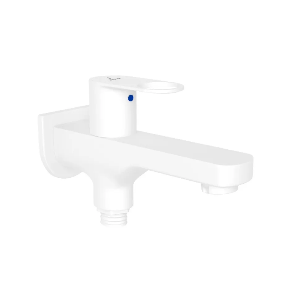 Настенный фланец обеспечивает надёжную и аккуратную установку крана, подчёркивая его лаконичный и элегантный дизайн. Два выхода делают кран универсальным и удобным решением для различных задач, что добавляет удобства в использовании. Белое матовое покрытие защищает изделие от загрязнений и отпечатков пальцев, облегчая уход и сохраняя безупречный внешний вид на протяжении долгих лет.