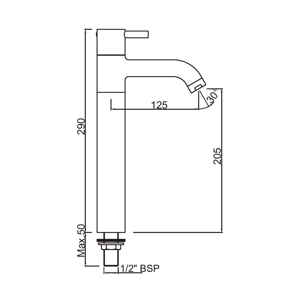 Кран оснащён стандартным подключением 1/2 дюйма, что делает его универсальным и подходящим для большинства установок. Элегантный дизайн и высокий излив обеспечивают максимальный комфорт в использовании и добавляют стильный акцент в интерьер ванной комнаты.