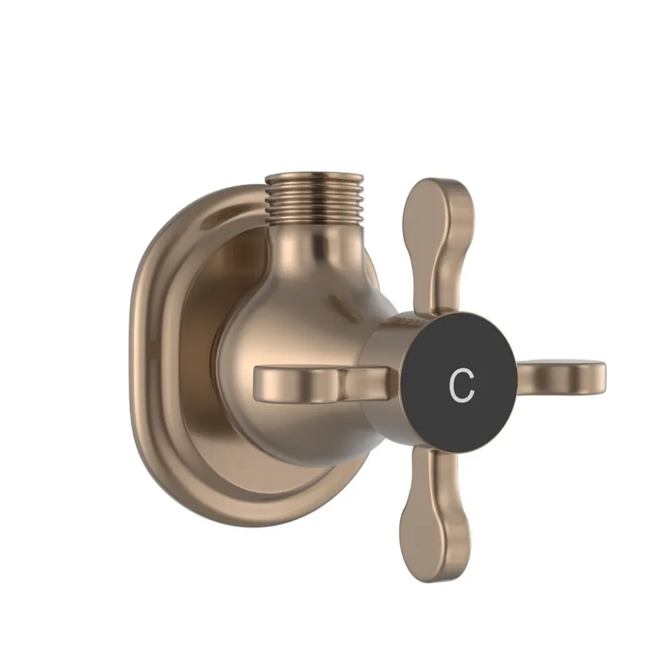 ИндияКран Jaquar Queens Prime QQP-GDS-7053PM — угловой запорный клапан в цвете "Золотая пыль". Данная отделка создает ощущение роскоши и тепла, добавляя ванной комнате изысканности. Кран оснащен настенным фланцем для удобной установки и надежного крепления, обеспечивая комфорт в использовании и долговечность конструкции.