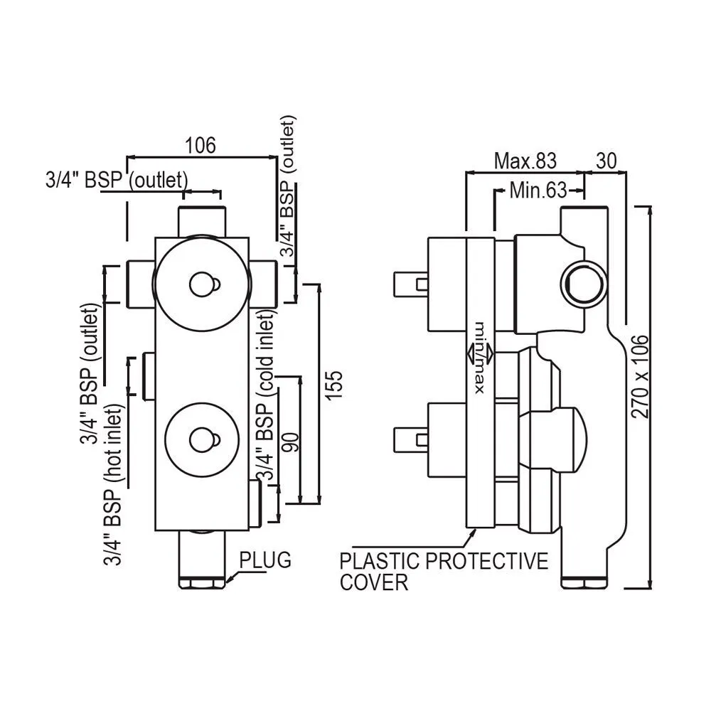 Встраиваемая часть однорычажного смесителя Aquamax для ванны/душа Jaquar ALD-CHR-683 предназначена для скрытого монтажа и оснащена термостатическим механизмом, который поддерживает стабильную температуру воды, создавая безопасные и комфортные условия для всех пользователей. 3-ходовой дивертор позволяет легко переключаться между тремя различными источниками подачи воды, такими как ванна, верхний душ и ручной душ, что обеспечивает высокую универсальность и удобство использования.